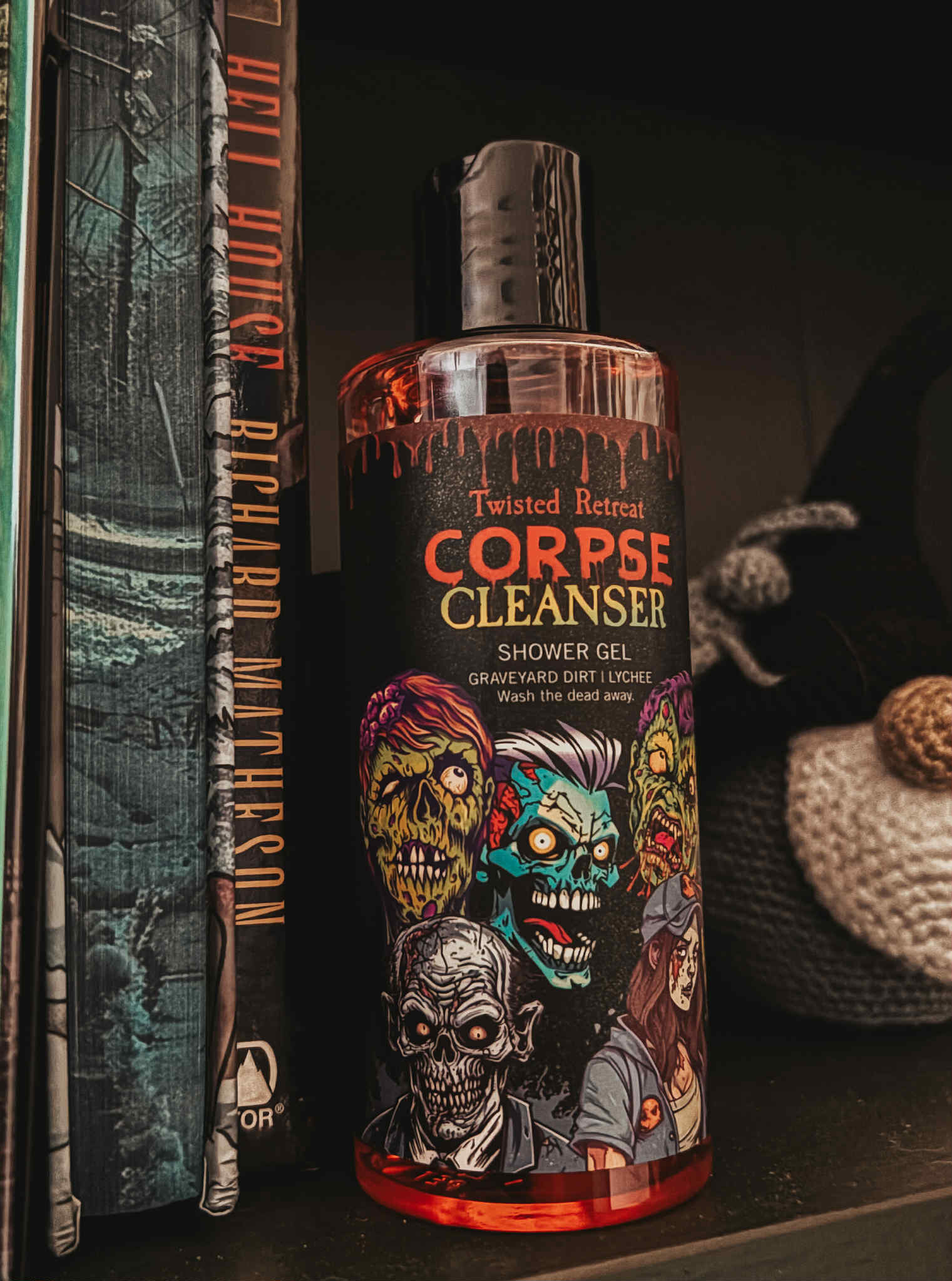 Exclusive shower gel from Petrichor Ink. It smells of lychee and graveyard dirt.